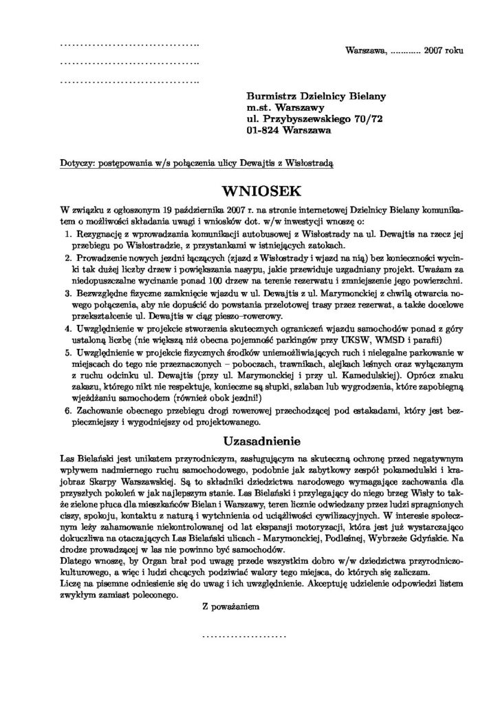 Bez kategorii Połączenie ul. Dewajtis z Wisłostradą – konsultacje społeczne bis Redakcja 13 lutego 2008