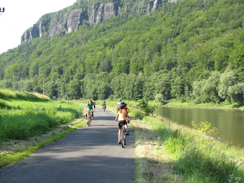 Na granicy czesko-niemieckiej szlak prowadzi przez szalenie widokowy przełom Łaby. Dzięki prowadzeniu szlaku wzdłuż rzeki te wszystkie skały i urwiska możemy podziwiać nie podjeżdżając więcej niż kilka metrów w górę.