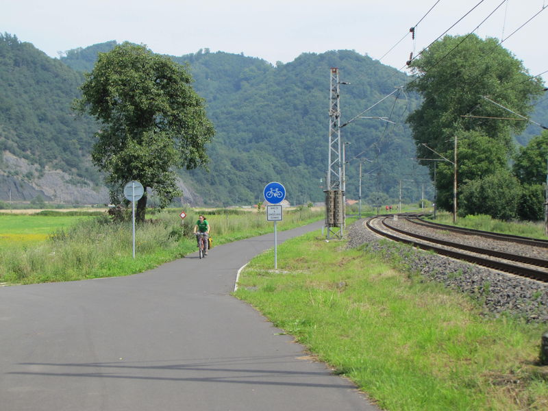 Choć dalej, za Děčínem, zdarzają się też dość strome odcinki. Na szczęście krótkie.