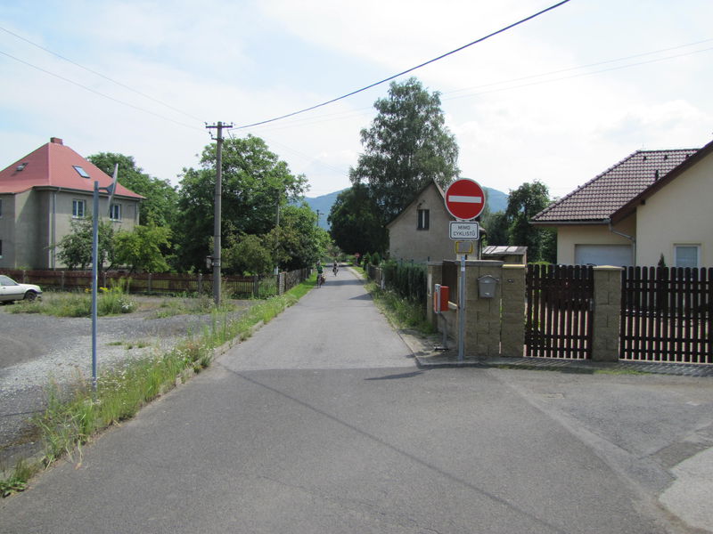 …zdarzają się np. odcinki prowadzone drogami technicznymi Kolei Czeskich (České dráhy – ČD).