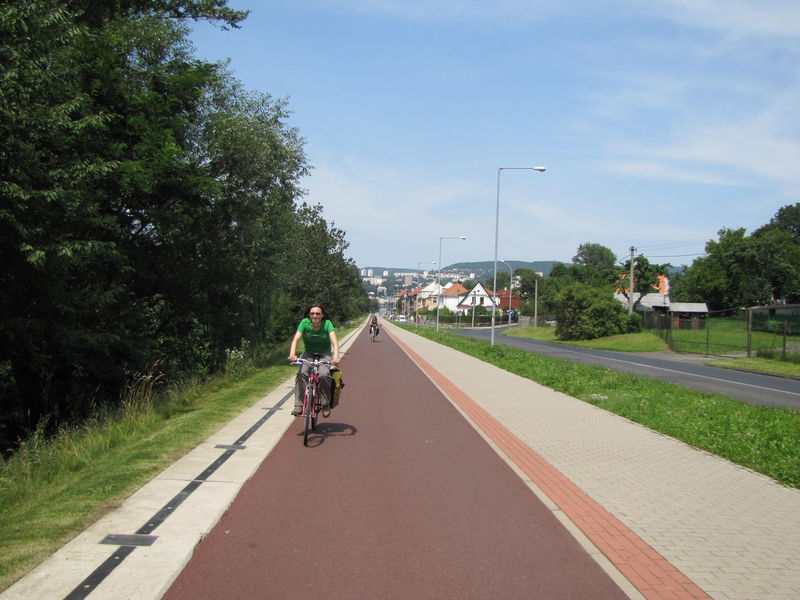 A to już Ústí nad Labem – droga dla rowerów i wyraźnie odróżniający się chodnik.
