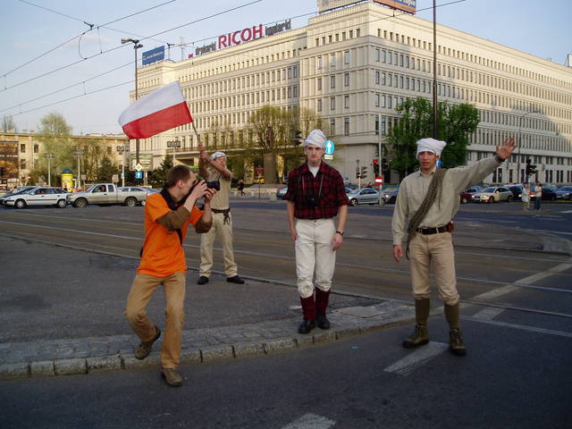 Na trasie przejazdu, w wybranych punktach symbolizujących poszczególne afrykańskie kraje, odgrywane były scenki z podróży Kazimierza Nowaka. Na zdjęciu Kazik pod palmami.