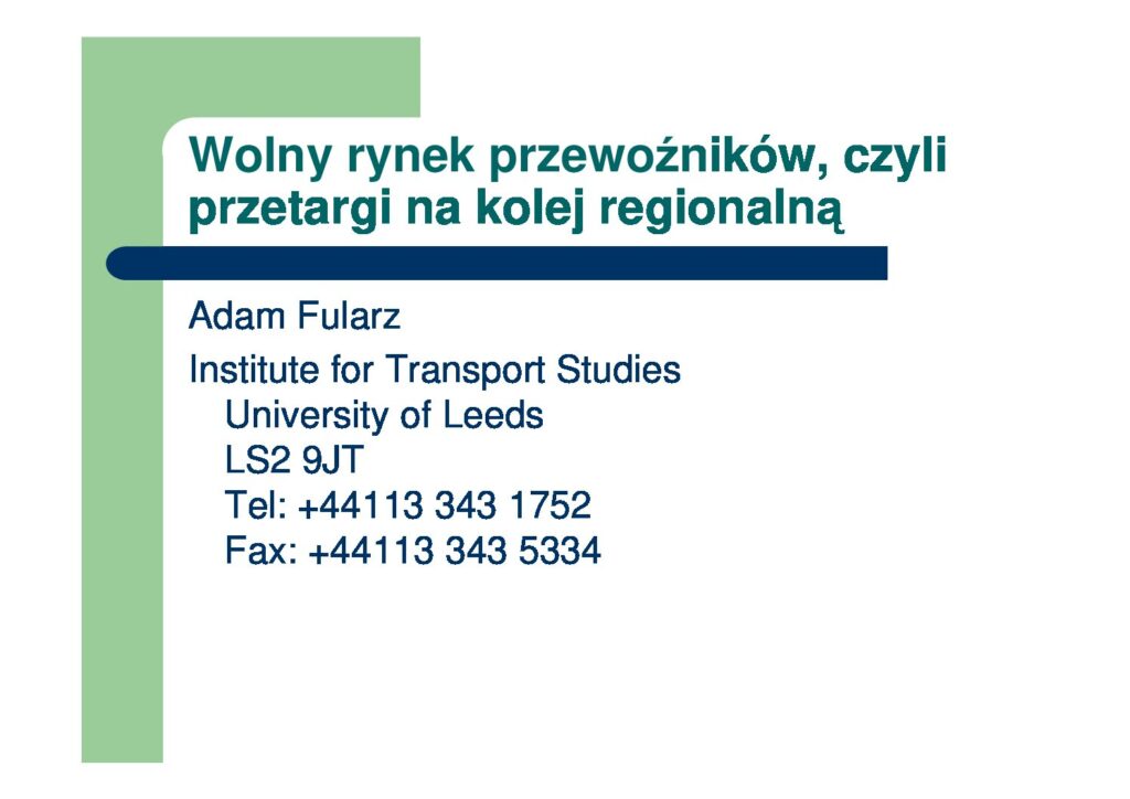 Centrum Zrównoważonego Transportu Kolej Zarządzanie pasażerskim transportem kolejowym – konferencja dla samorządów Redakcja 5 czerwca 2006